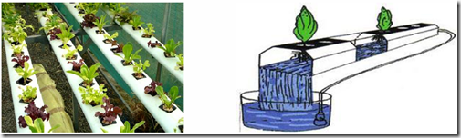 Akar tanaman terendam sedikit oleh lapisan air yg tipis yg mengalir biasanya terbuat dari pipa PVC